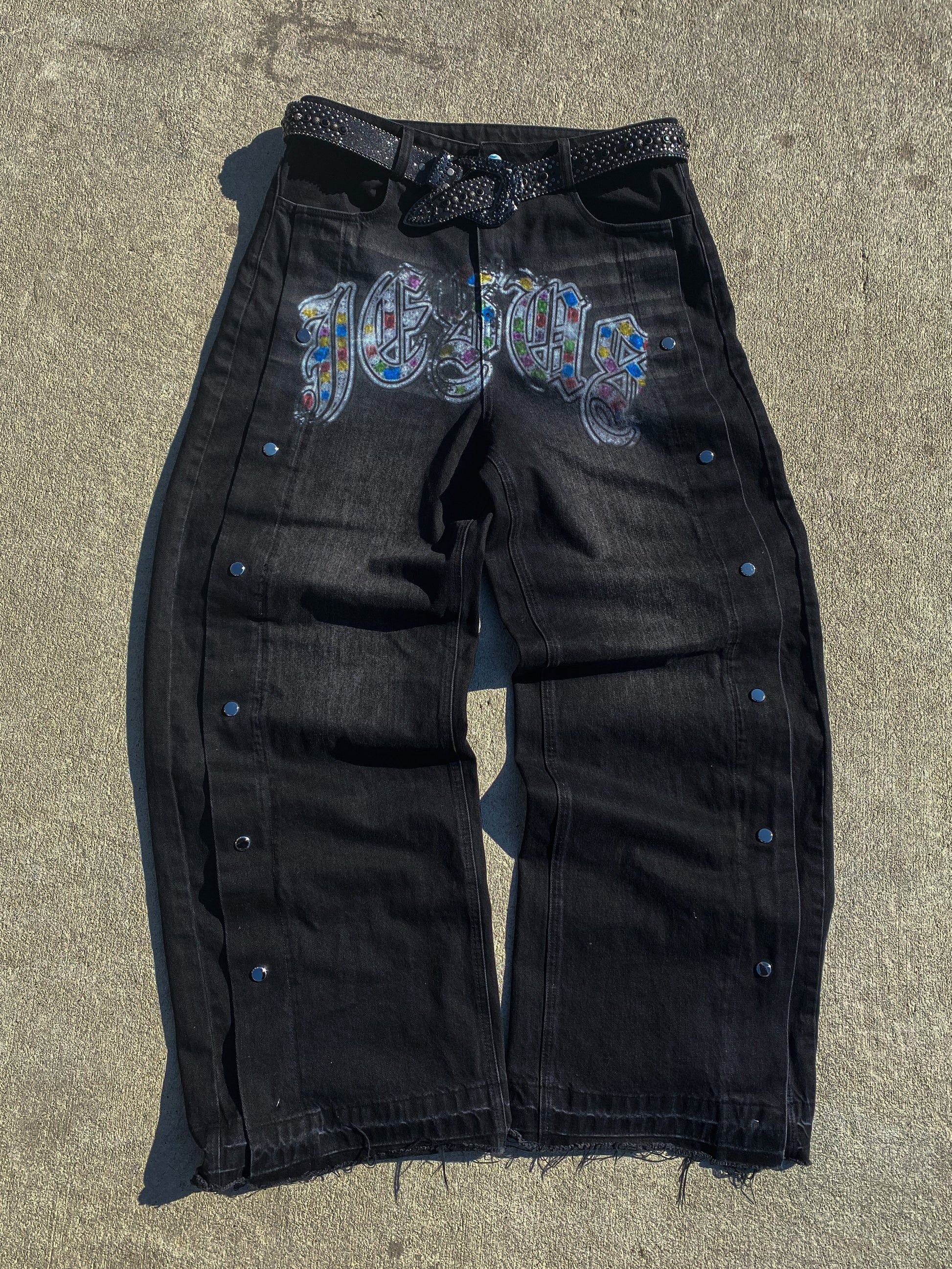 "Bling" Jesus Distressed Snap Denim